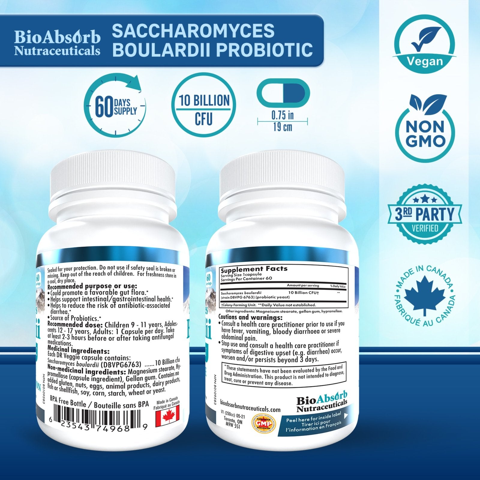 BioAbsorb S. Boulardii needs no refrigeration and can travel with you ANYWHERE.
